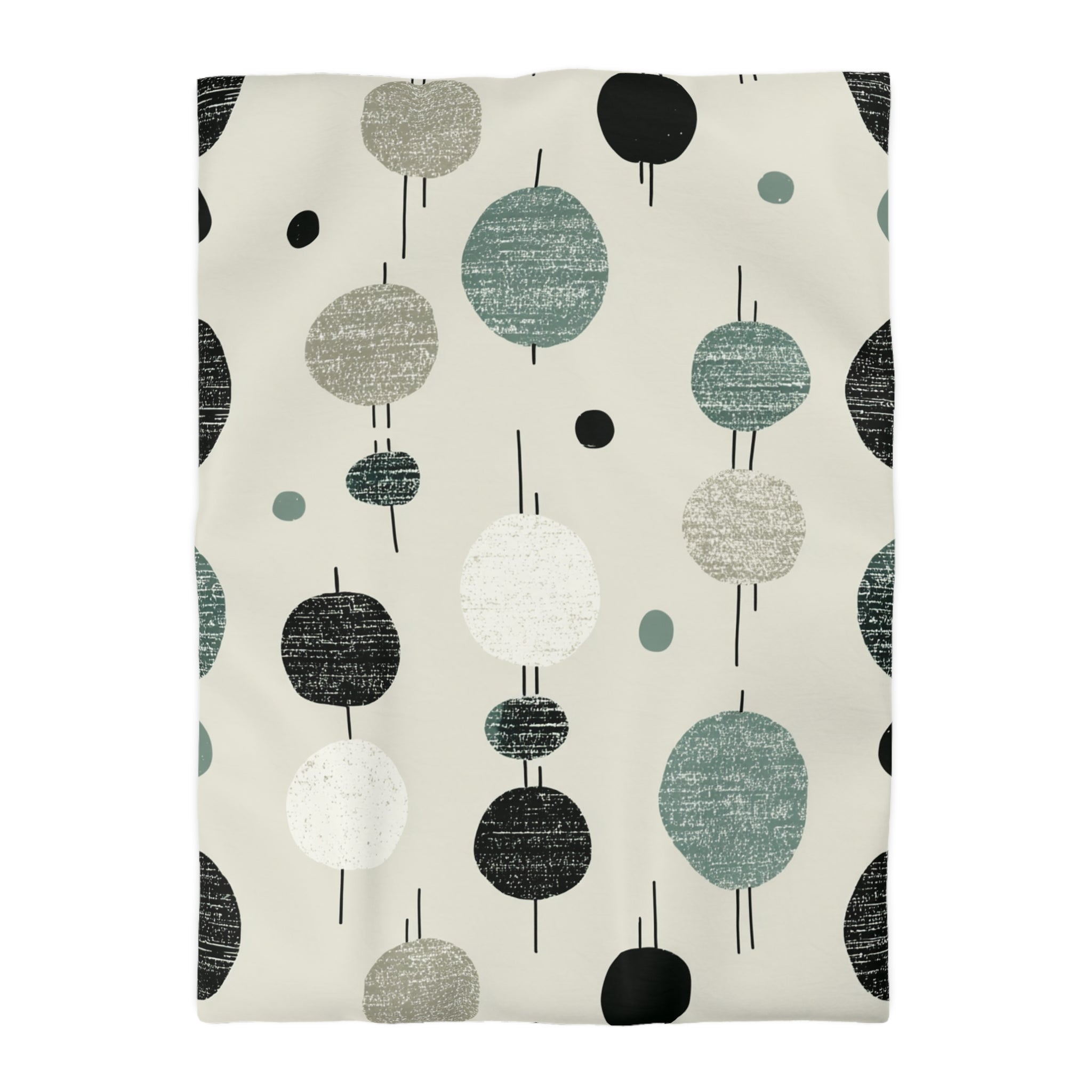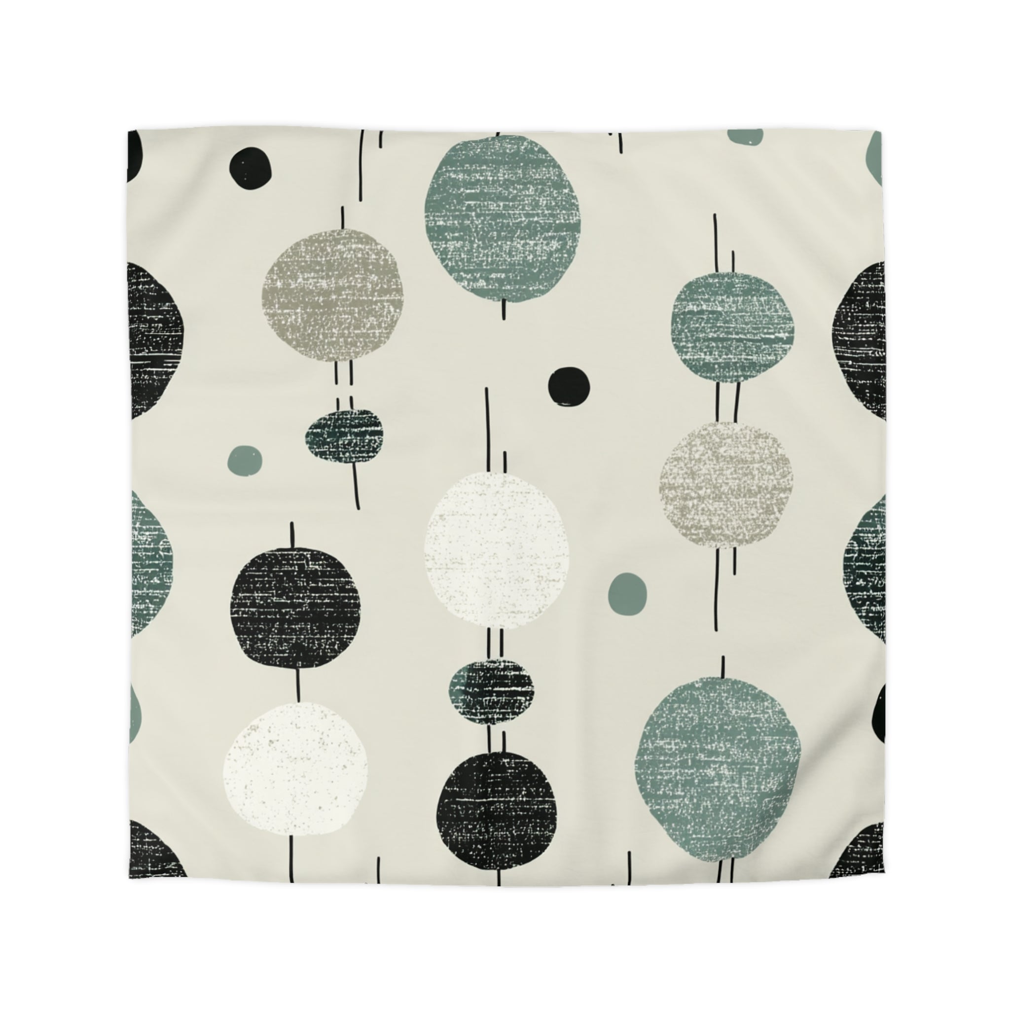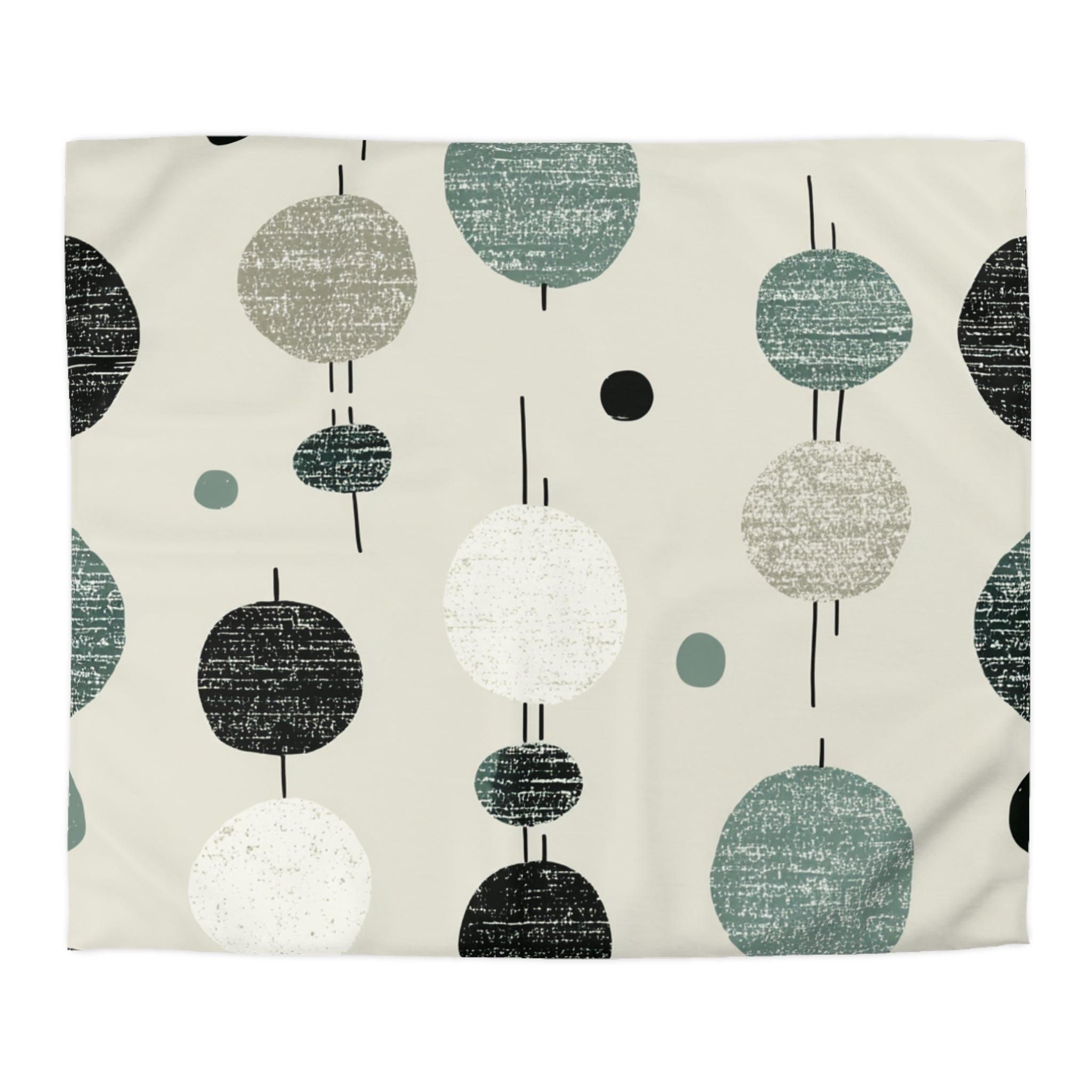 The Orbital Forms Bed Cover transforms your bed into a composed mid-century canvas. Floating circular forms, muted retro tones, and rhythmic line work echo the visual language of 1950s interiors—measured, optimistic, and beautifully intentional.