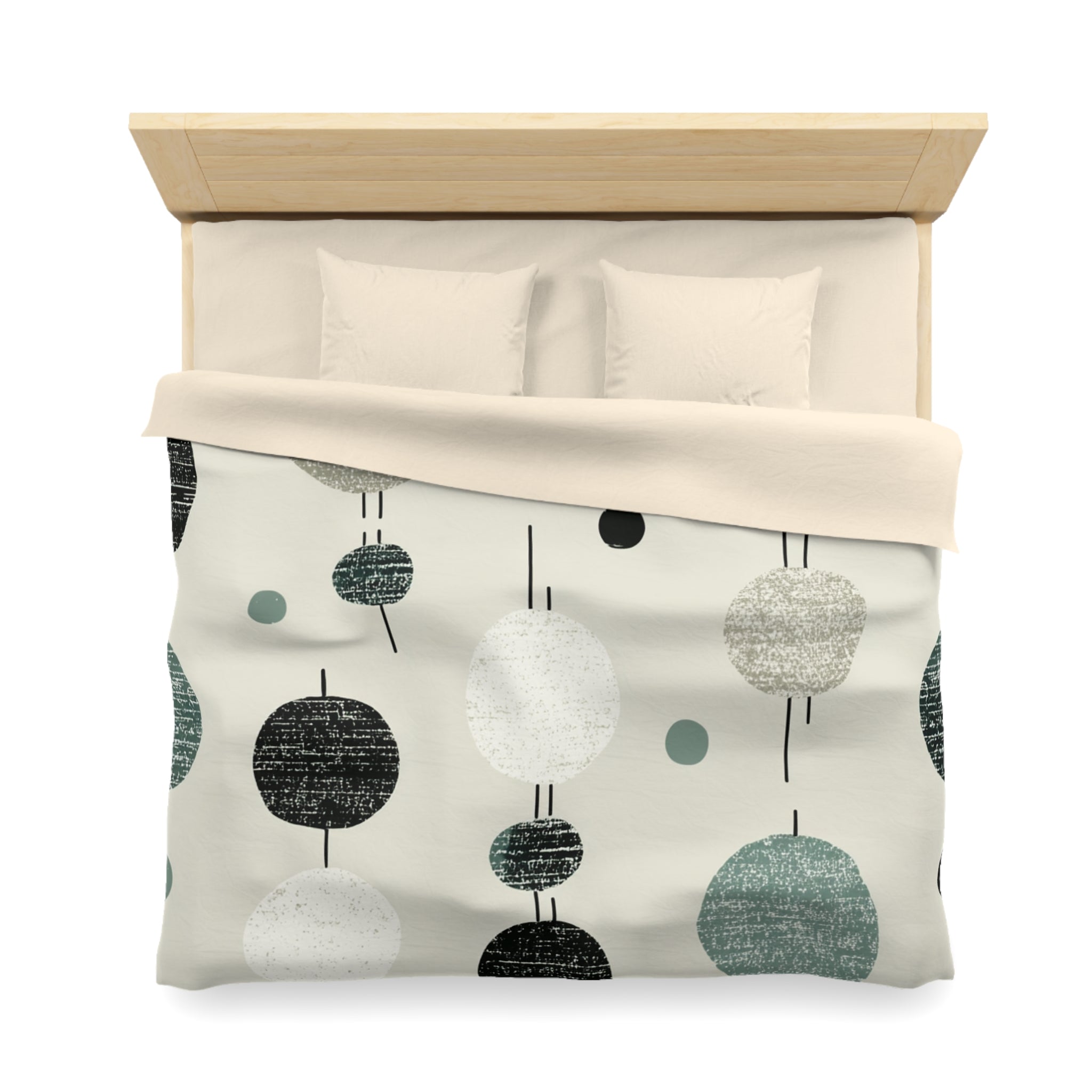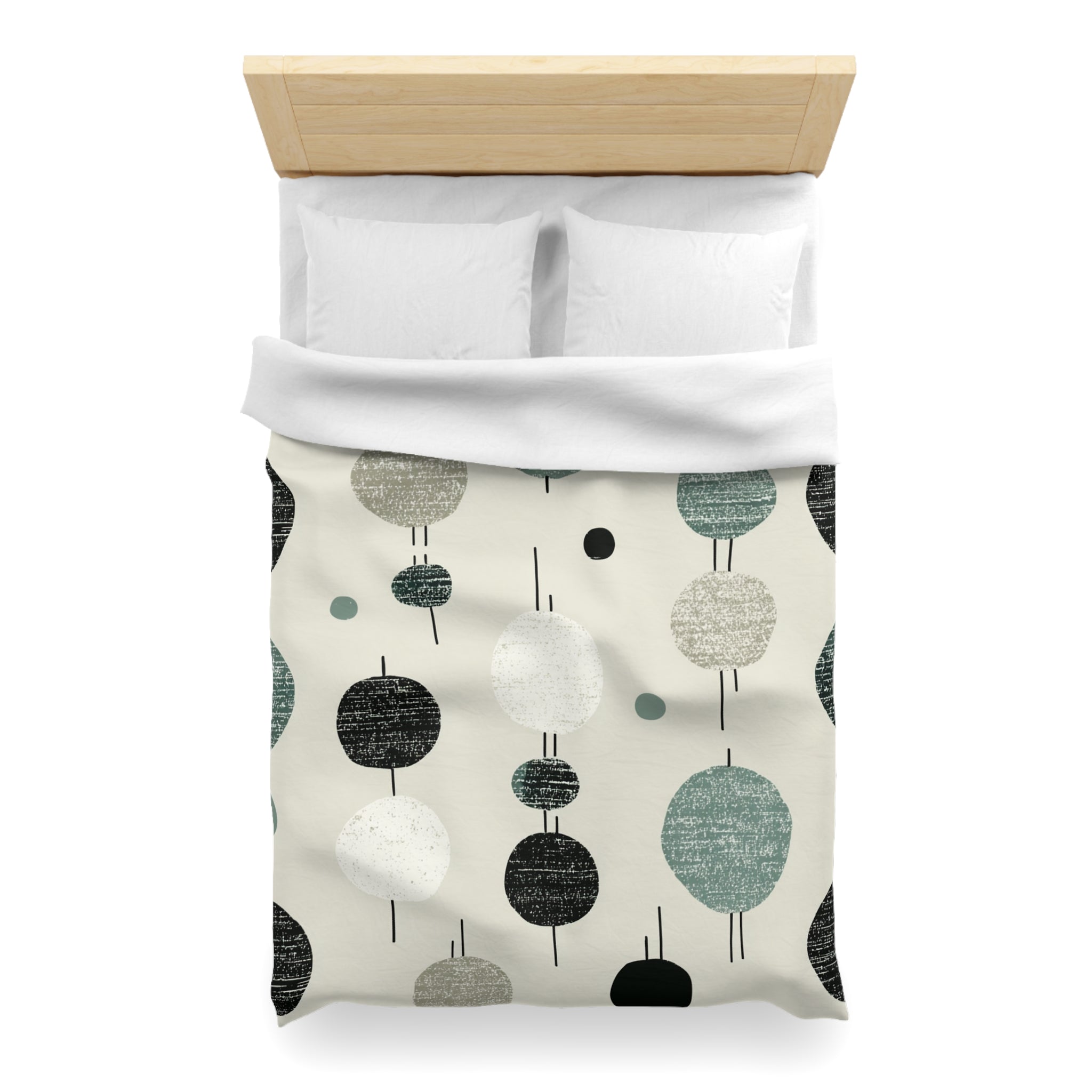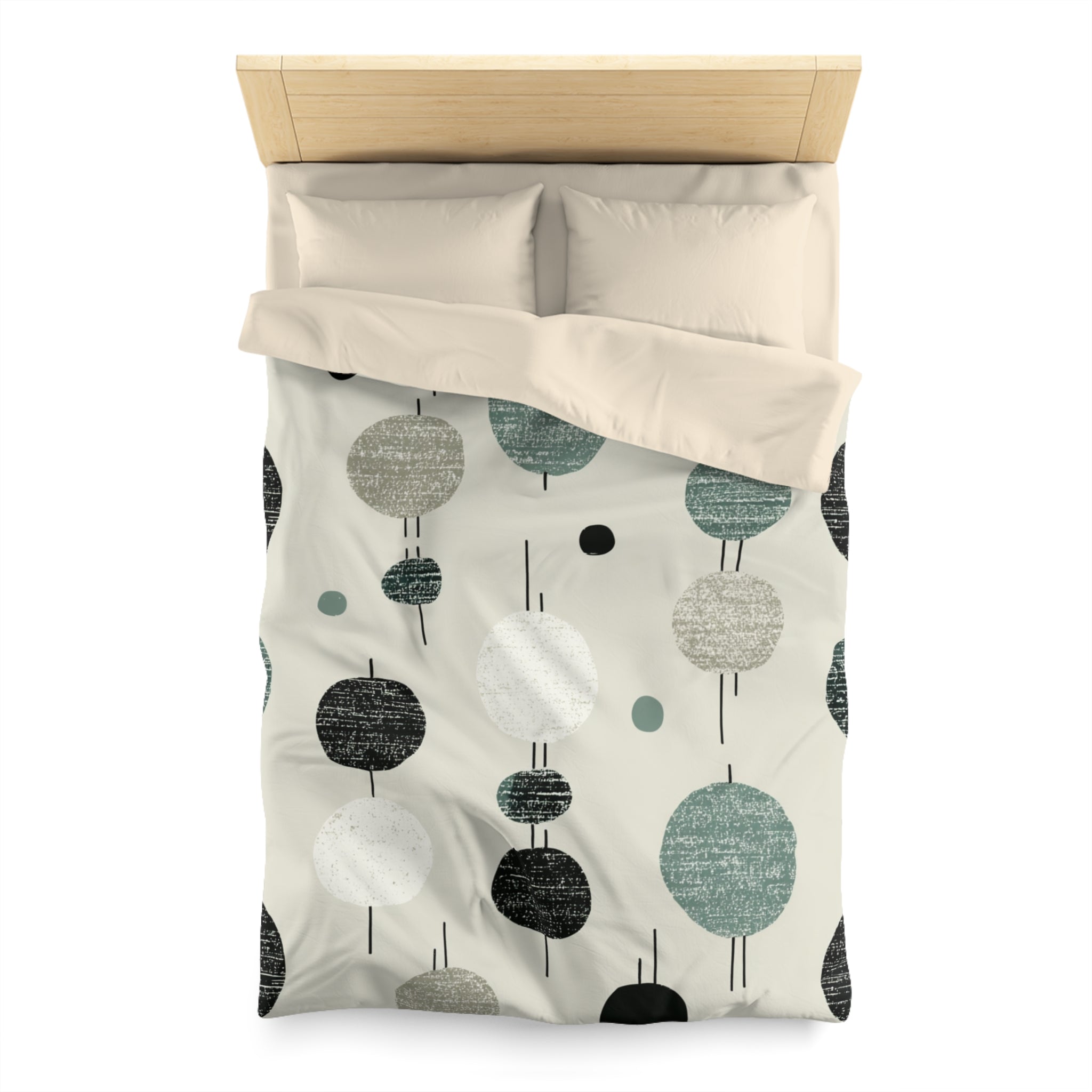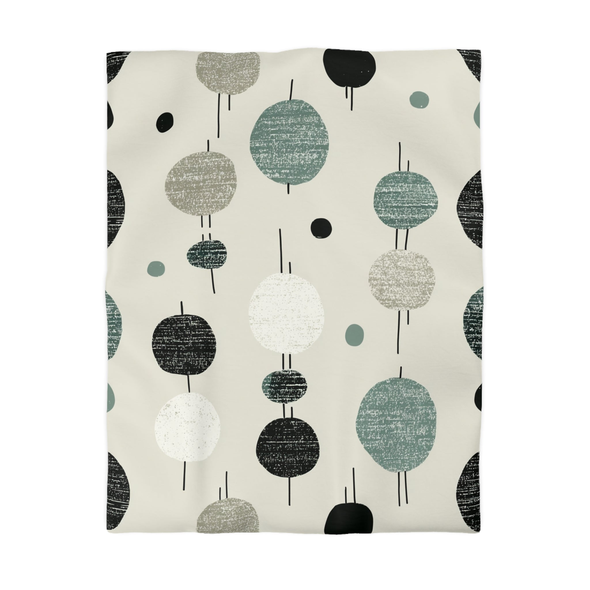 The Orbital Forms Bed Cover transforms your bed into a composed mid-century canvas. Floating circular forms, muted retro tones, and rhythmic line work echo the visual language of 1950s interiors—measured, optimistic, and beautifully intentional.