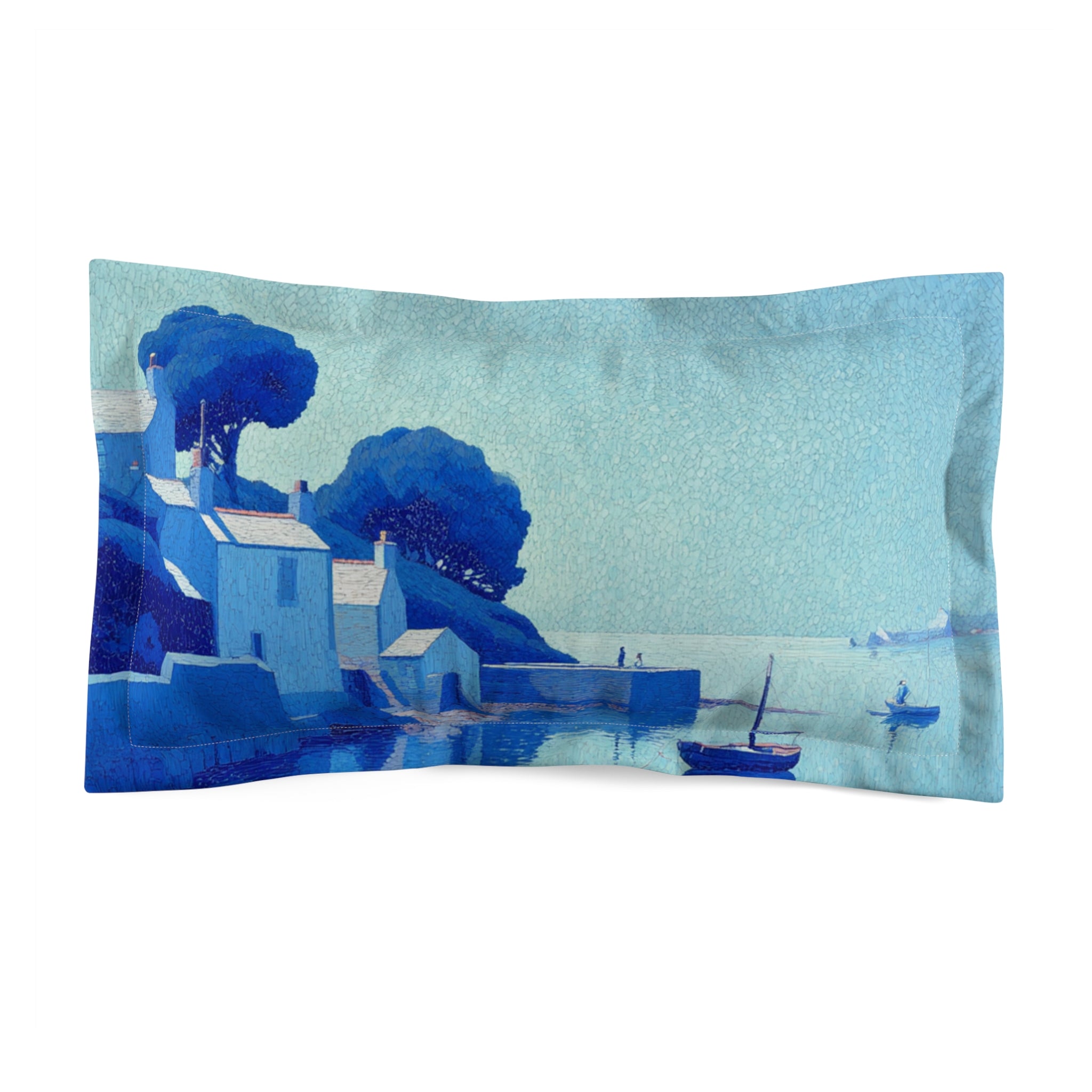 The Ginner Coastal Dream Pillow Case channels the vivid, architectural calm of Charles Ginner’s coastal scenes—rich cobalt shadows, layered textures, and crisp, rhythmic brushwork that turns a quiet harbour into a world of colour and structure. It’s a landscape you can practically step into… or, more realistically, fall asleep on.