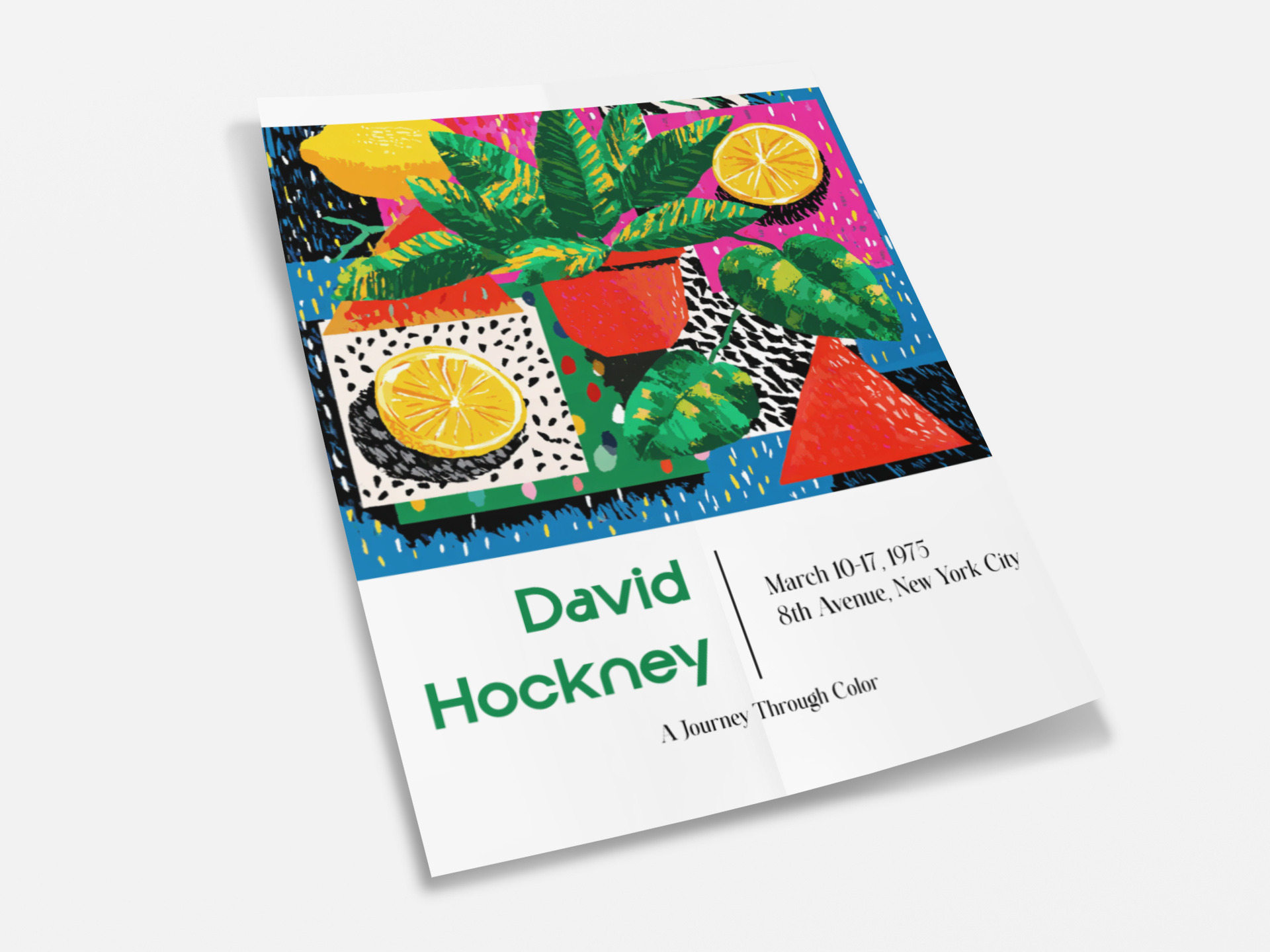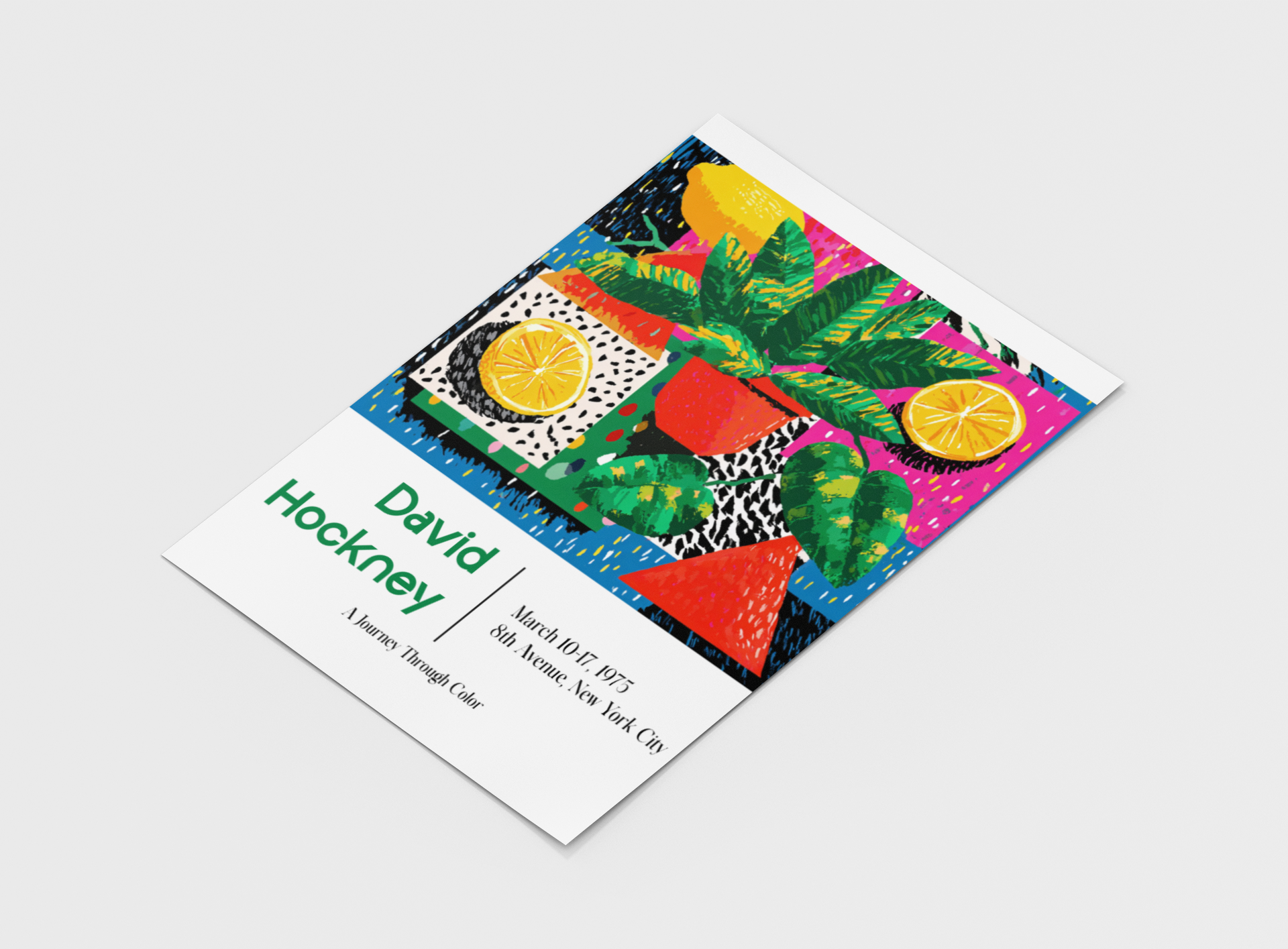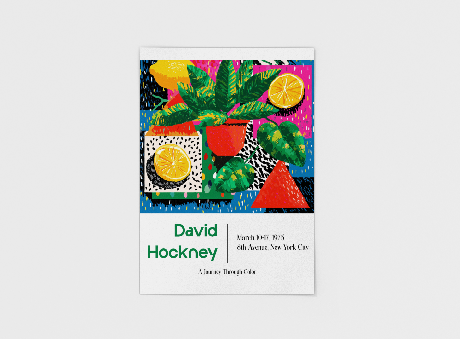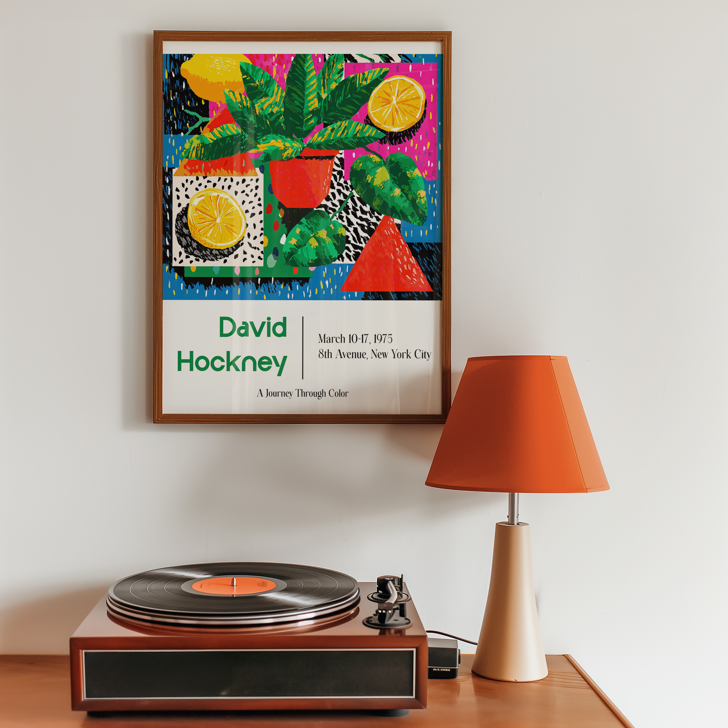 Each lemon slice, leaf, and abstract shape feels alive with movement, echoing Hockney’s fascination with perception and design. It’s both playful and precise — a snapshot of modern art’s energy distilled into a single frame.
