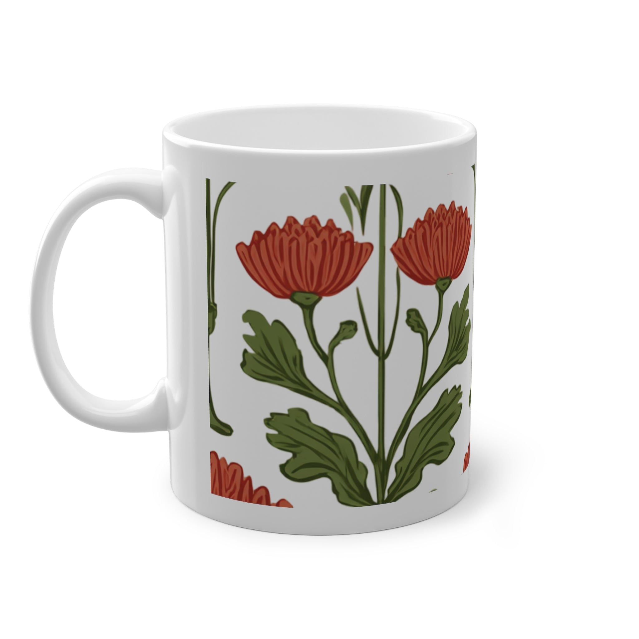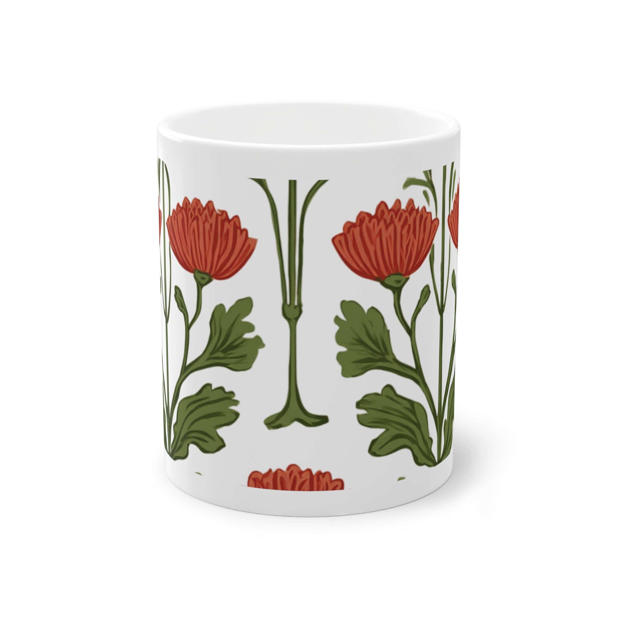 Meet the Bloom of the Belle Époque Mug — where your morning ritual gets dressed up in full Art Nouveau glamour. Inspired by the era’s love for nature, ornament, and long, elegant lines, this mug wraps your coffee in a garden of stylized florals that feel hand-drawn straight from a fin-de-siècle sketchbook. The red blossoms and flowing stems create a soft, rhythmic pattern that turns every sip into a quiet museum moment — minus the security guard side-eye.