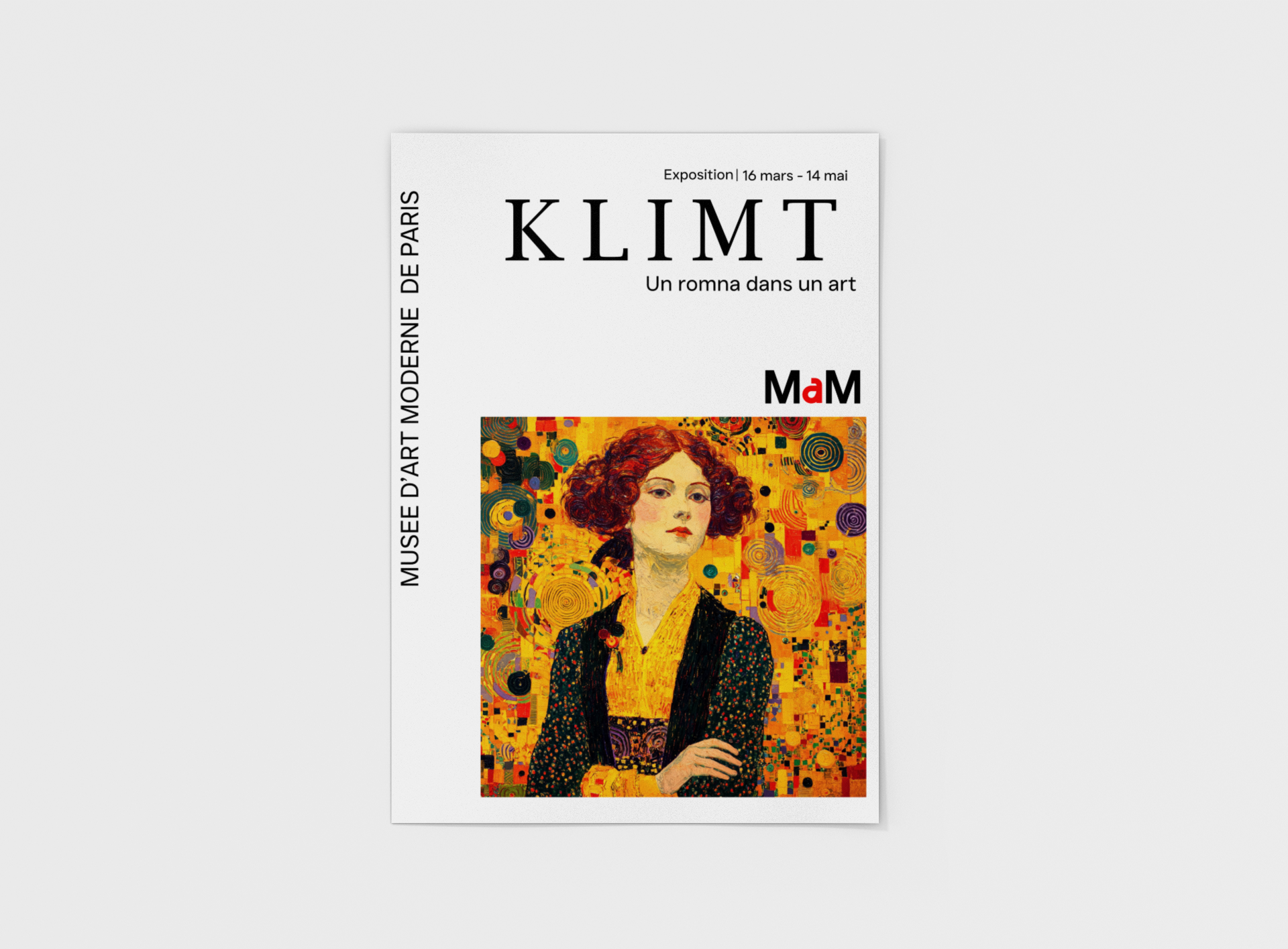 Where bold geometry meets golden grace. This Klimt exhibition-style poster channels the allure of La Belle Époque — rich, radiant, and unapologetically artistic. A celebration of color, pattern, and poise that turns any wall into a Parisian gallery.