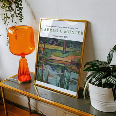 Serene yet vibrant, this piece encapsulates Gabriele Münter’s mastery of color and rhythm within nature. The tranquil pond, mirrored reflections, and simplified forms evoke both peace and introspection — a quiet moment framed through bold Expressionist vision.