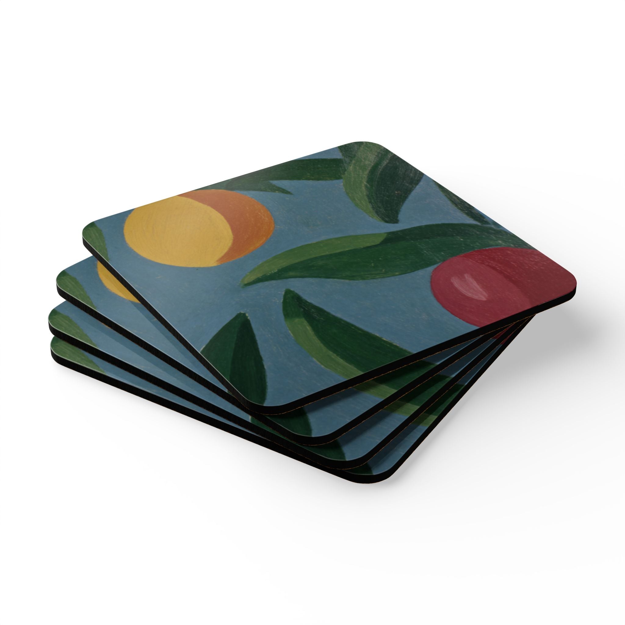 Fresh from our Omnia Art universe, the Bloomsbury Orchard Coaster Set turns your coffee table into a mini modernist studio. Inspired by Roger Fry’s bold still-life experiments, these coasters layer sun-ripe fruit, painterly brush textures and soft Mediterranean blues into a design that feels both hand-crafted and effortlessly contemporary.