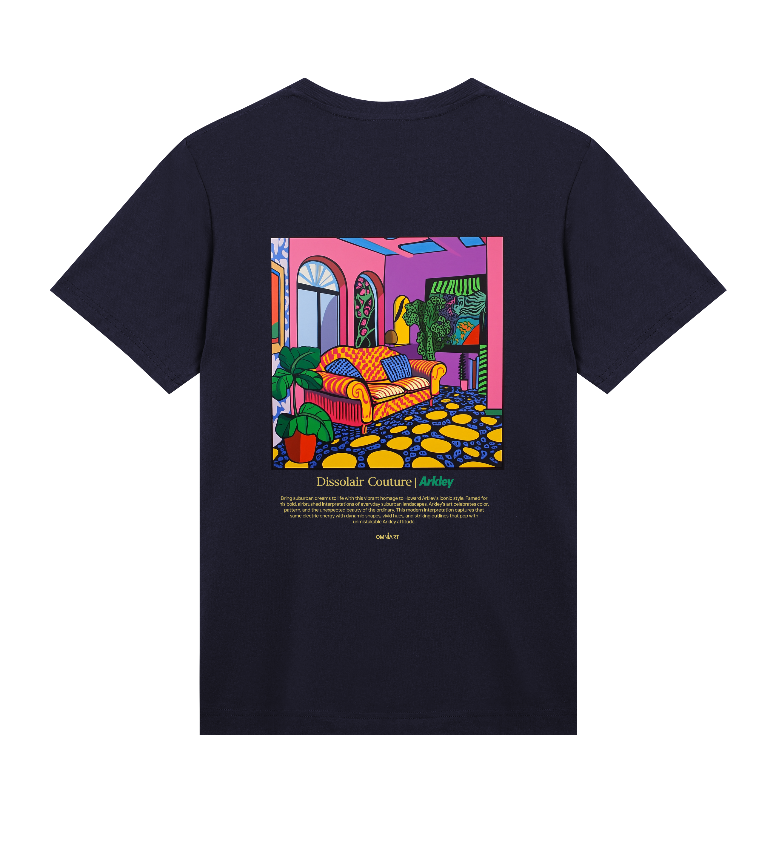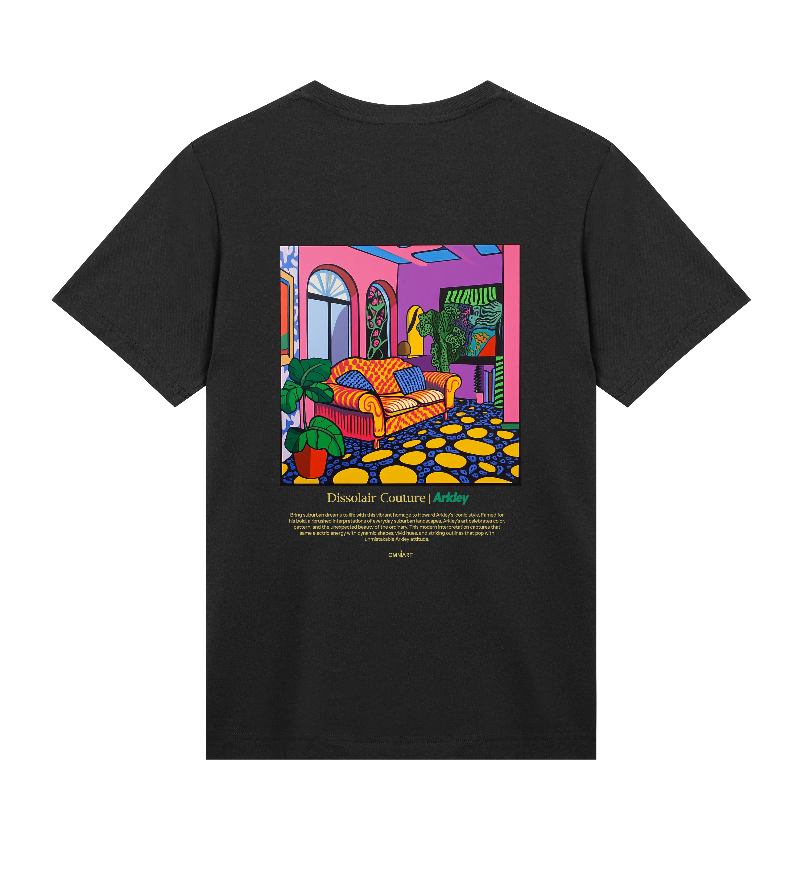 Step into color-saturated comfort with this Howard Arkley–inspired tee — where suburban nostalgia meets bold modern art. The “Dissolair Couture” design transforms everyday interiors into vibrant, electric compositions bursting with pattern, energy, and play. Printed on premium cotton, this shirt bridges streetwear and gallery culture — think Pockies meets Museum. A wearable artwork for those who live vividly.